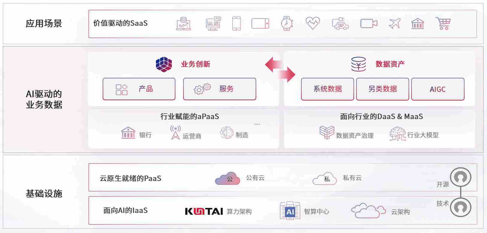 数字时代,,围绕企业数字化转型的关键要素,,,AB钱包数码开创性的提出数云融合战略和技术体系框架,,,,着力在云原生、、、、数字原生、、、、AI原生和信创产业上架构产品和服务能力,,为处在不同数字化转型阶段的快消零售、、、、汽车、、、金融、、医疗、、、政企、、教育、、、、运营商等行业客户提供泛在的敏捷IT能力和融合的数据驱动能力,,,,构建跨界融合创新的数字业务场景和新业务模式,,,助力企业级客户建立面向未来的核心能力和竞争优势,,,全面推动社会的数字化、、智能化转型升级。。